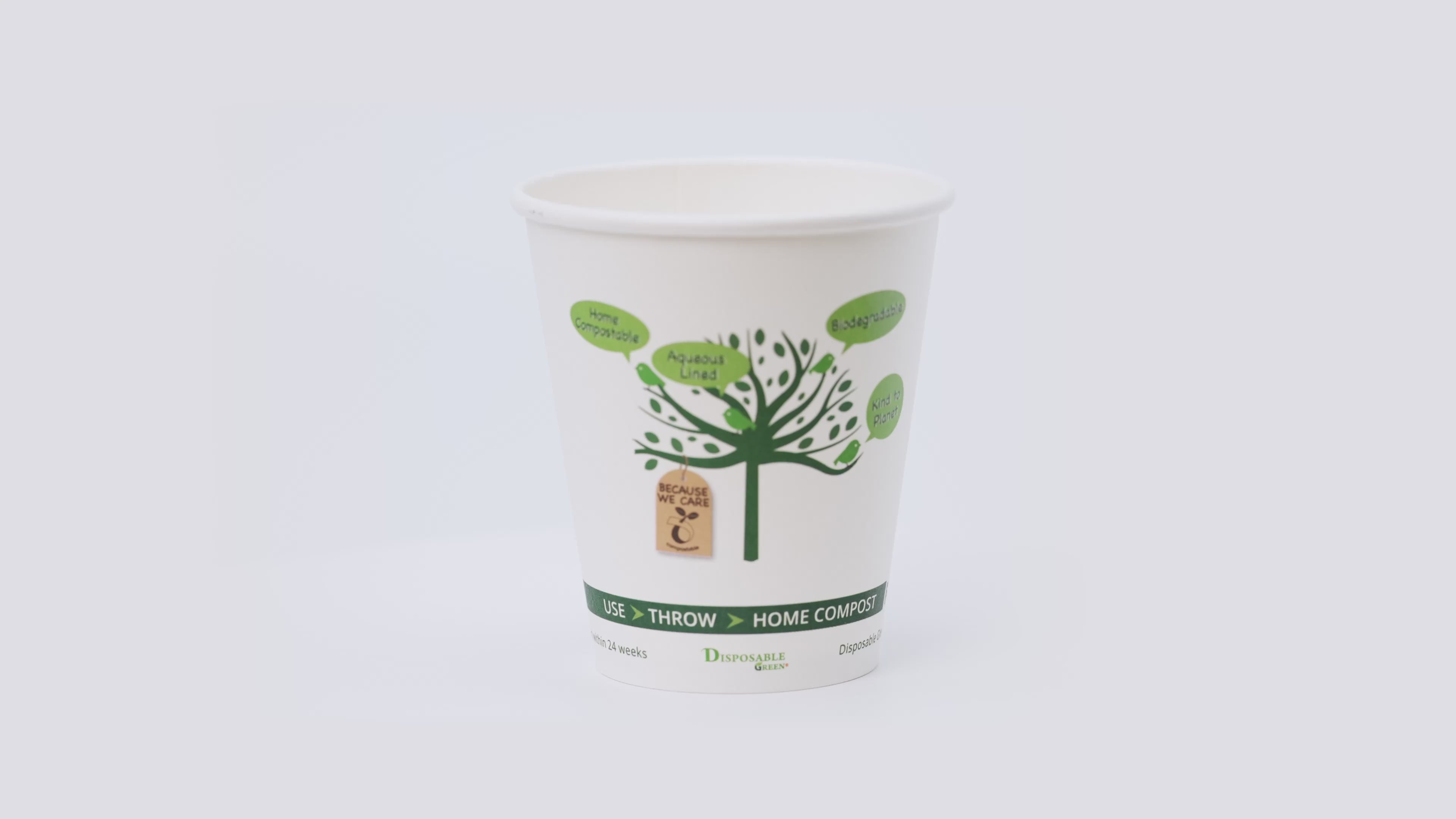 Made from sustainably-sourced paperboard with a proprietary UNIQUE AQUEOUS LINING, this cup can be completely composted in the backyard or landfill within 24weeks, unlike PLA, which needs to be sent for Industrial composting.