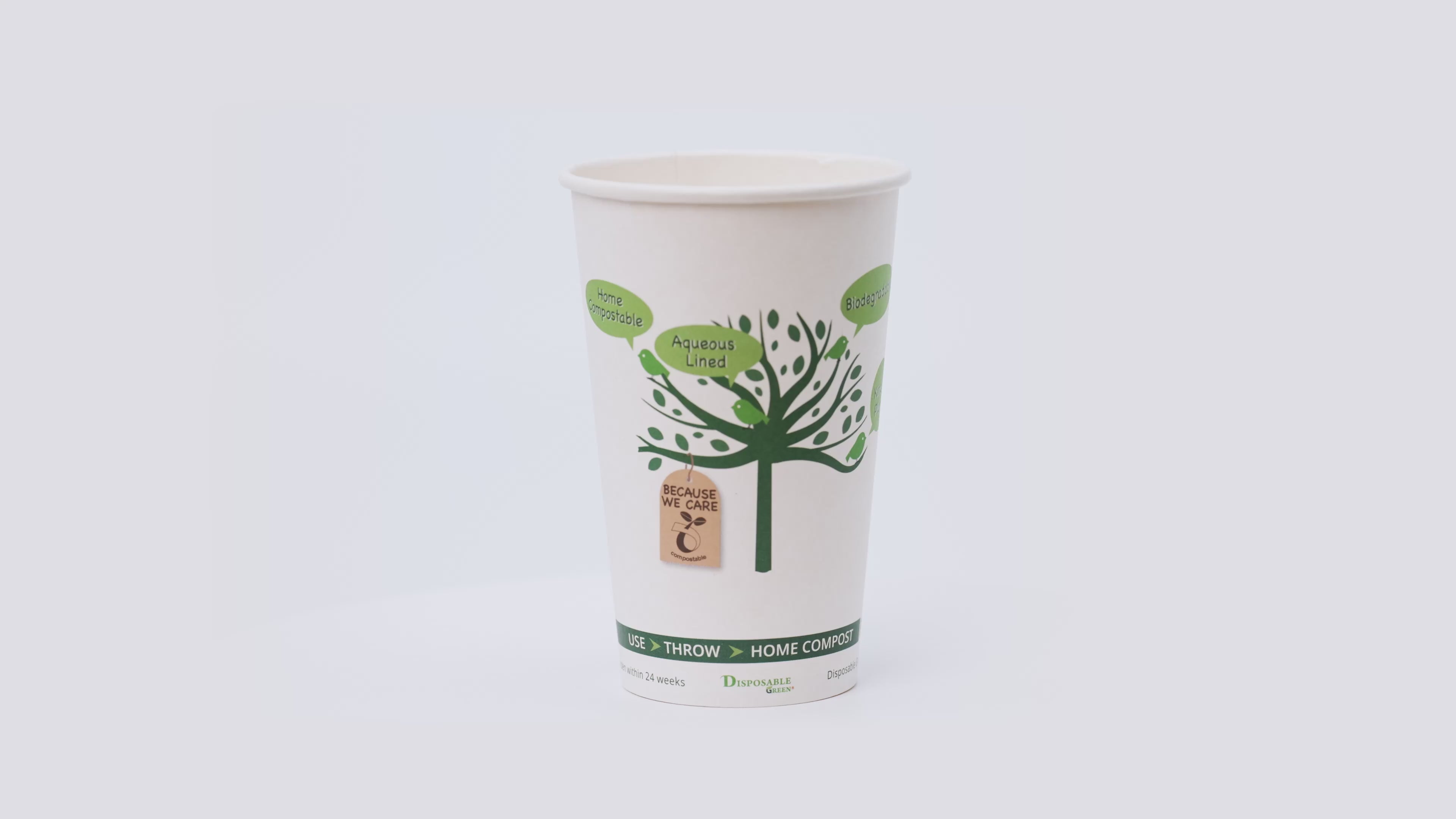 Made from sustainably-sourced paperboard with a proprietary UNIQUE AQUEOUS LINING, this cup can be completely composted in the backyard or landfill within 24weeks, unlike PLA, which needs to be sent for Industrial composting.
