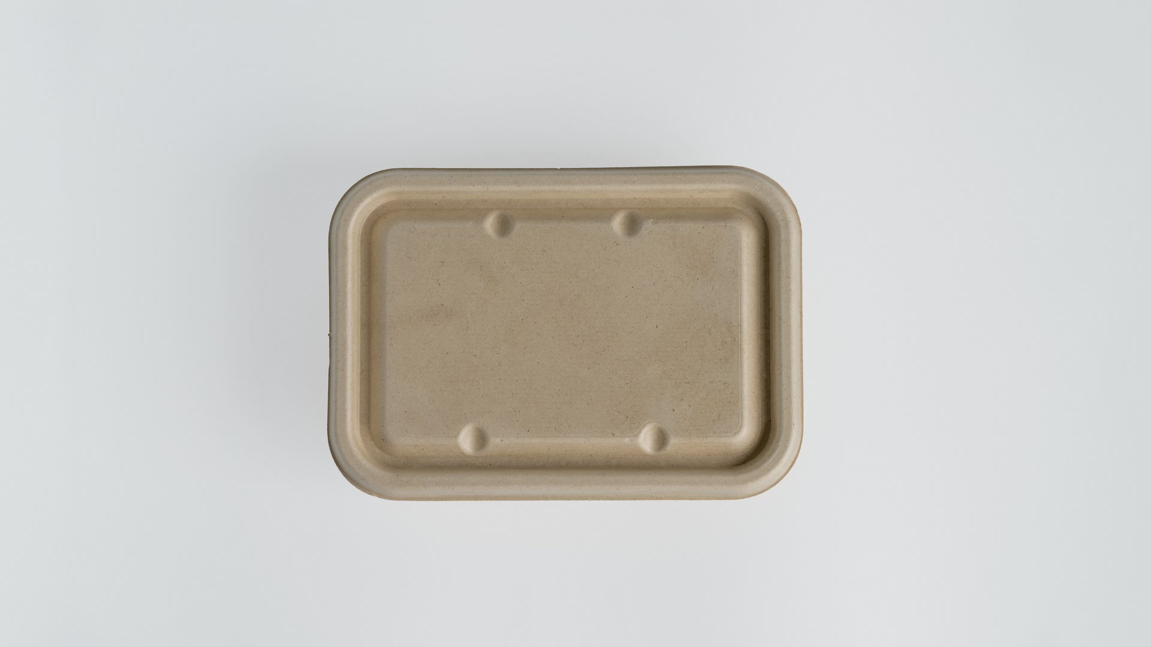The lid for this bagasse 750ml Rectangle Food Box is sold separately.